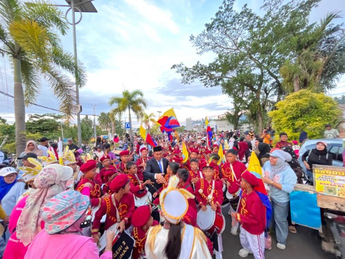 Tutuyan – Suasana kemeriahan peringatan Hari Ulang Tahun (HUT) Republik Indonesia (RI), ke-80 di Kabupaten Bolaang Mongondow Timur (Boltim), semakin terasa dengan penampilan memukau SD Negeri 2 Kotabunan dalam Lomba Drumband, Jumat (15/8/2025).